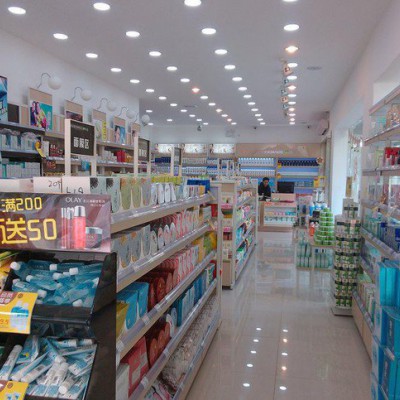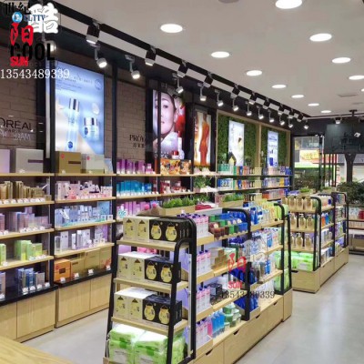 20平米化妆品店装修图片 化妆品柜台展示柜定做厂家 北京屈臣氏超市单面日用化妆品货架厂